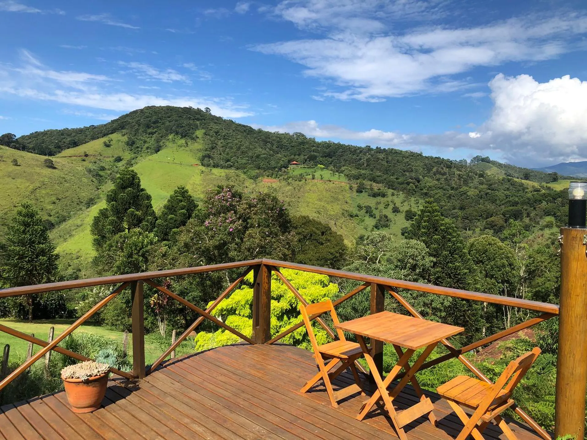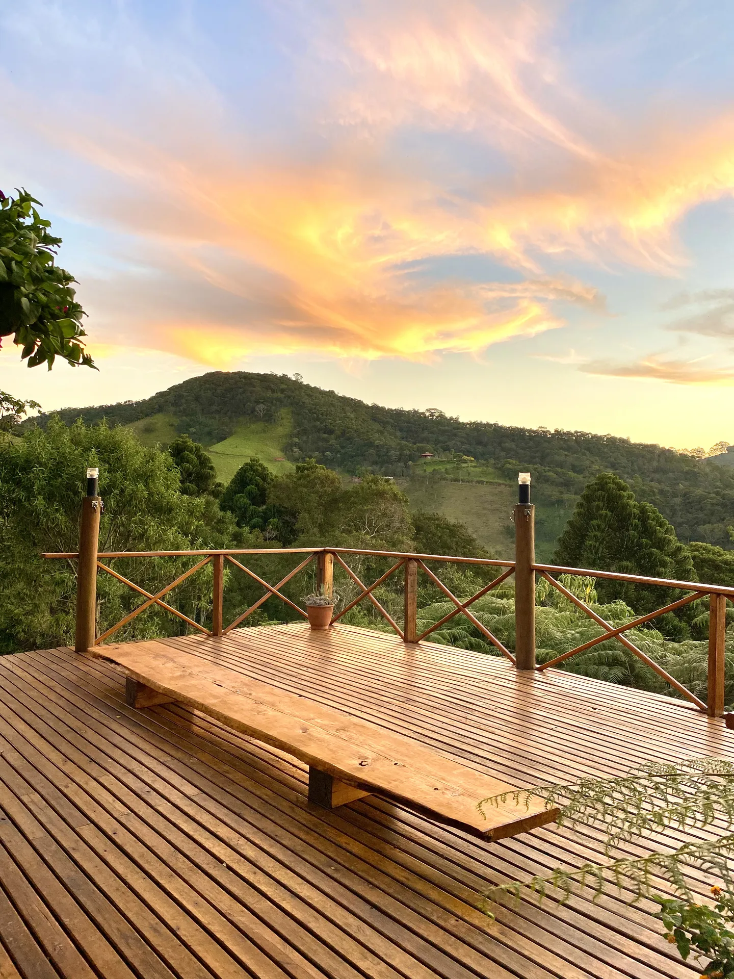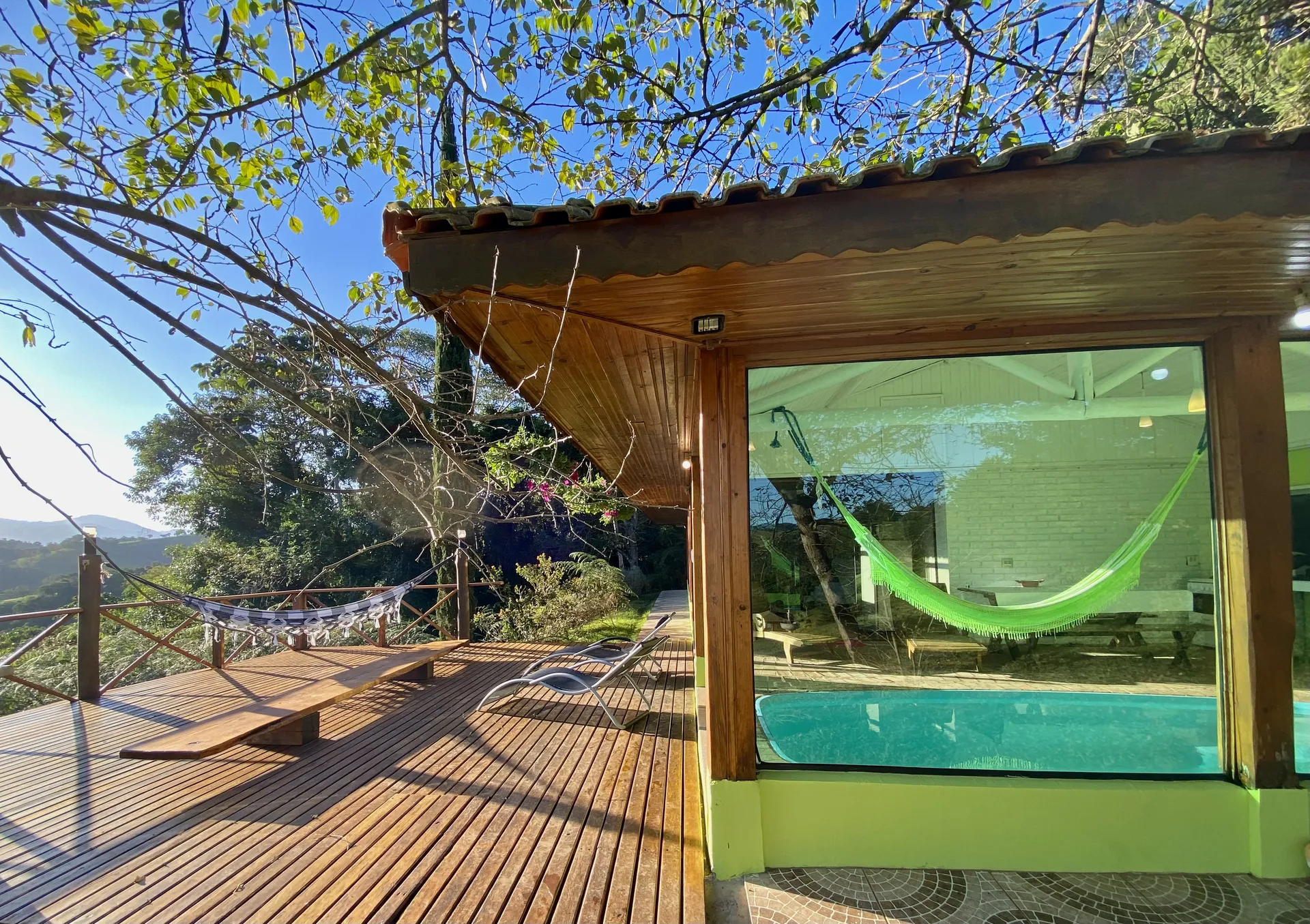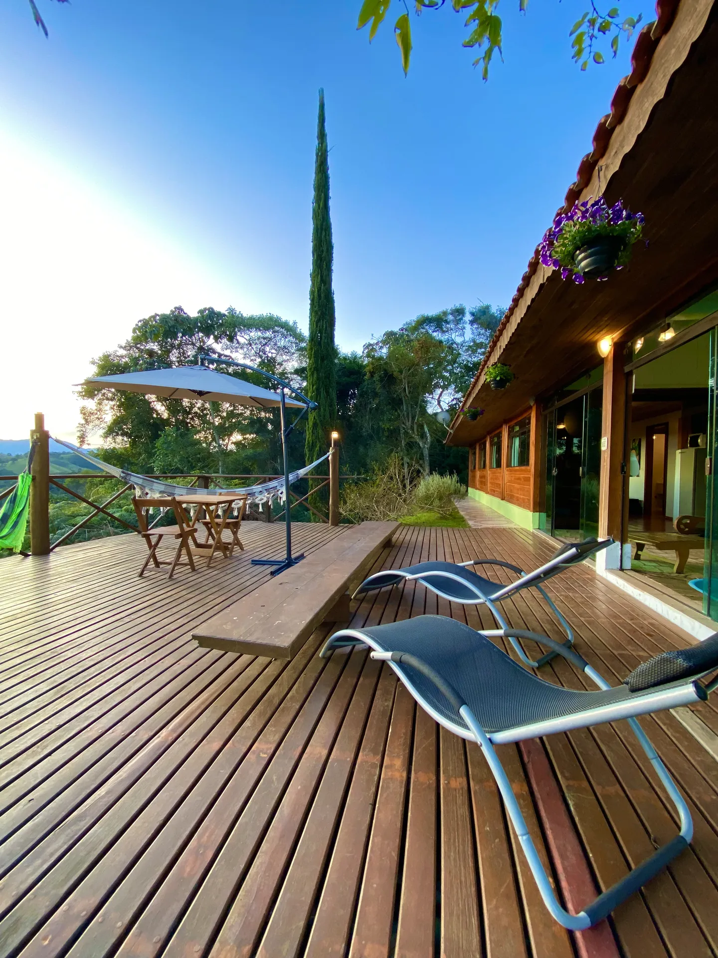 O deck panorâmico de 40m² oferece uma vista de tirar o fôlego das montanhas de Santo Antônio do Pinhal. Com três redes de descanso, é o lugar perfeito para relaxar, apreciar o pôr do sol ou simplesmente contemplar a natureza ao redor.