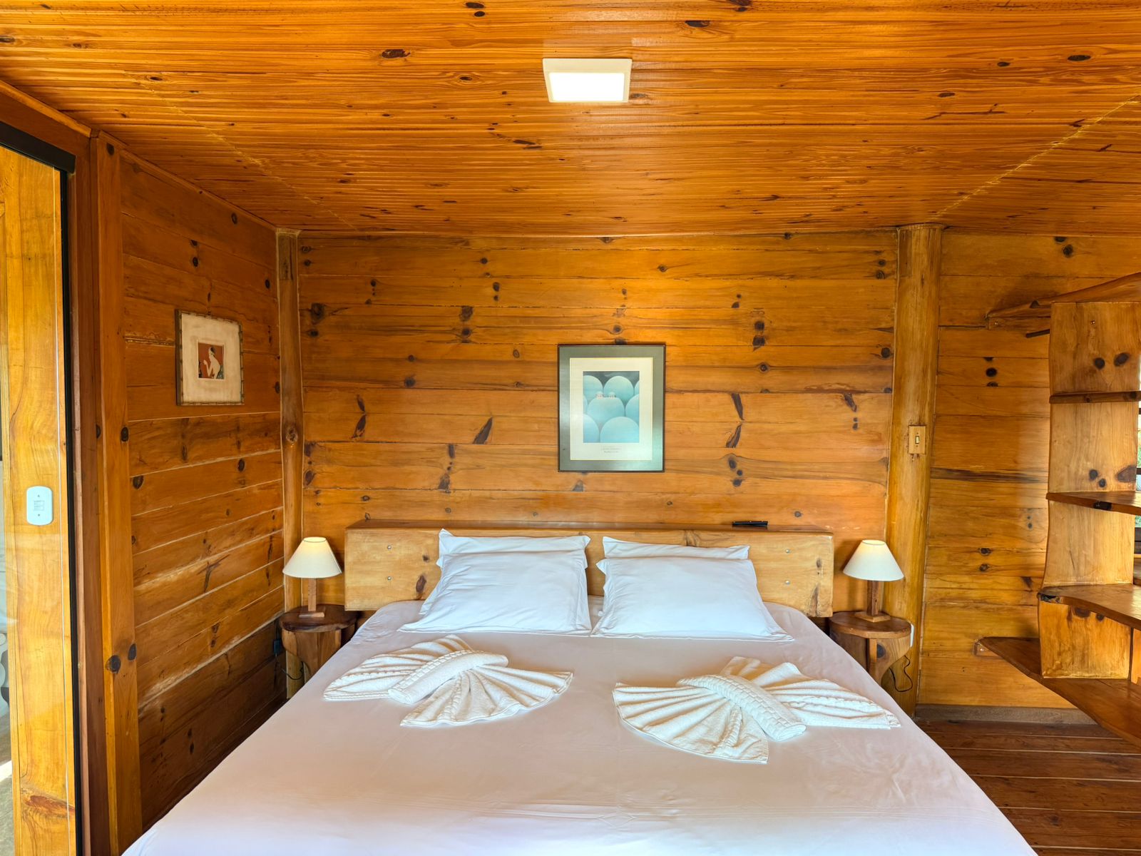 Aqui, cada detalhe contribui para uma experiência sensorial completa: luz natural entrando pelas janelas, o som da natureza ao redor e a tranquilidade de estar longe da rotina.